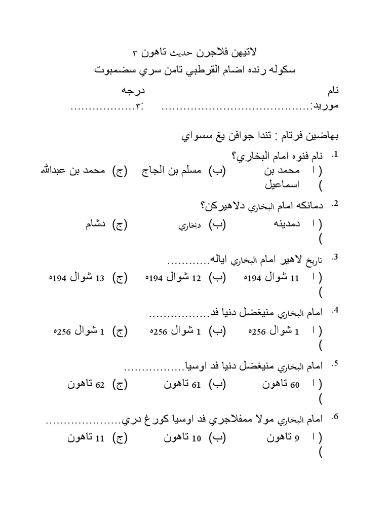 MATAN HADIS DAN MAKSUDNYA. Adapun kegiatan penilaian akhir semester pada tahun pelajaran 20182019 menurut prakiraan Kalender Pendidikan akan dilaksanakan pada tanggal 28 November sampai tanggal 8 Desember. Soalan ujian pentaksiran jawi tahun 3 2021 Text of soalan jawi tahun 3.
